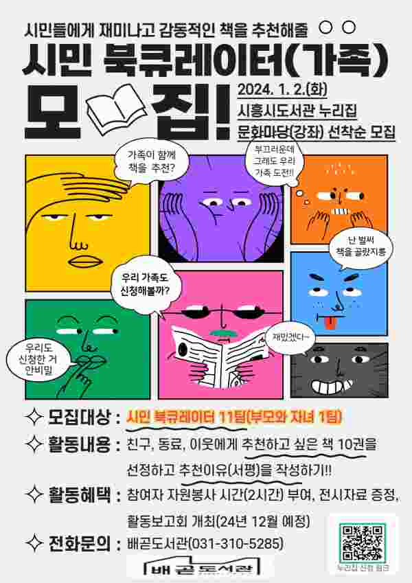 책을 통한 가족 간의 소통과 화합의 확대를 위해 부모와 자녀, 가족 단위로만 시민 북 큐레이터를 신청할 수 있다.