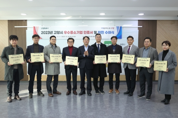 고양특례시, 2023년 우수중소기업 인증서 및 현판 수여