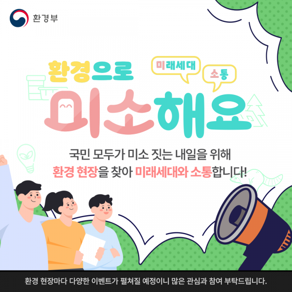 환경부는 ‘환경으로 미소해요’ 운동을 주제로 다회용기 사용 등 다양한 환경정책 현장을 찾아 미래세대와 적극 소통하며 국민 모두가 공감하며 미소 지을 수 있는 정책을 선보일 계획이다.