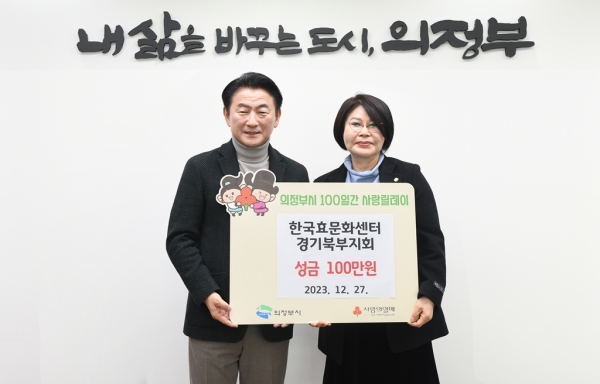 [금요저널] 의정부시는 12월 27일 한국효문화센터 경기북부지회가 의정부시 저소득가구를 위한 성금 100만원을 기부했다고 밝혔다.