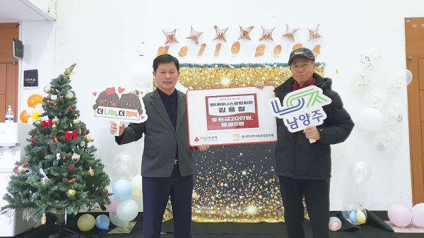 [금요저널] 남양주시 별내면은 지난 27일 별내테니스클럽 김용철 회장이 연말연시를 맞이해 관내 취약계층을 위한 후원금 20만원과 벌꿀 8개를 남양주시복지재단을 통해 기탁했다고 밝혔다.