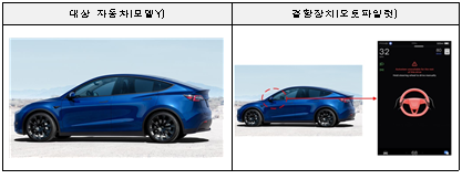 모델Y 등 4개 차종 63,991대는 오토파일럿 소프트웨어 오류로 모델X 등 2개 차종 1,992대는 충돌 시 차량 문잠금 기능이 해제되는 안전기준 부적합으로 각각 1월 5일부터 시정조치에 들어간다.