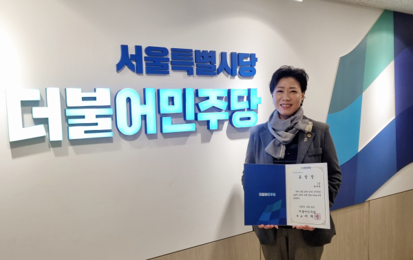 이어 지역이 주도하는 지방시대와 균형발전을 위한 참신하고 검증된 우수조례를 발굴할 목적으로 더불어민주당 참좋은지방정부위원회에서 주최하는 ‘2023 지방의회 우수조례 경진대회’에서 ‘서울특별시 어린이 통학로 교통안전을 위한 조례 일부개정조례안’으로 당대표 2급 포상도 수상했다.