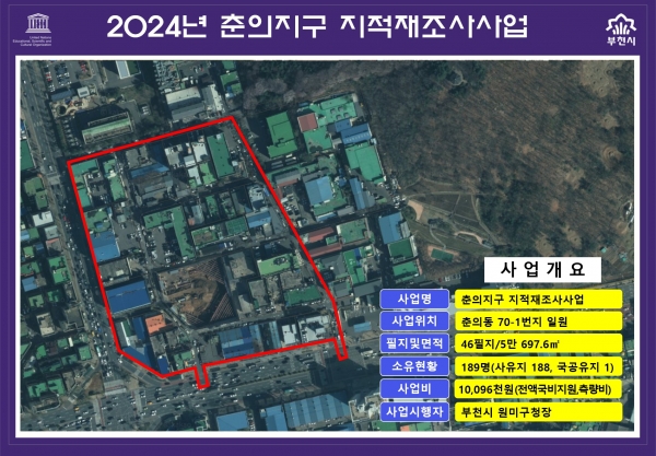 부천시는 2024년 지적재조사 사업지구로 춘의지구, 옥길2지구, 내동지구 등 3개 지구 124필지를 선정해 사업을 진행할 예정이다.