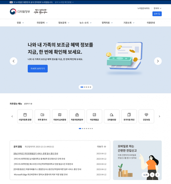 검색이나 로그인, 서비스 신청 등에서 공통적인 부분은 비슷한 방식으로 사용할 수 있게 되어 다양한 공공 웹·앱을 오가며 처리해야 하는 경우에도 더 쉽고 빠르게 서비스를 사용할 수 있게 된다.