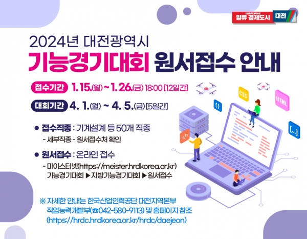 [금요저널] 대전시는 2024년도 대전광역시 기능경기대회 참가자를 오는 26일까지 모집한다.