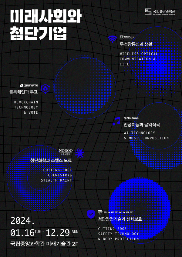 [금요저널] 국립중앙과학관은 민관협력 기반 과학기술문화 저변확대를 위한 ‘미래사회와 첨단기업’ 전시를 1월 16일에 미래기술관 2층에서 개막한다.
