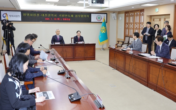 [금요저널] 대전광역시와 방위사업청은 1월 18일 대전광역시청에서 국방반도체 발전과 상호간 협력 강화를 위한 업무협약을 체결했다.