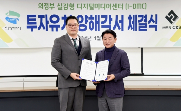 의정부시는 1월 22일 의정부 복합문화융합단지 도시개발구역에 ‘의정부 실감형 디지털미디어센터’를 조성·운영하고자 ㈜와이엔컬쳐앤스페이스와 투자유치 양해각서를 체결했다.