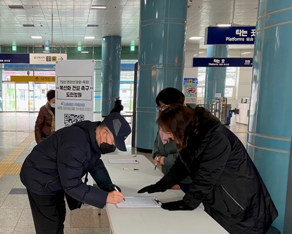 현호준 주민자치회장은 “추운 날씨에도 불구하고 바쁜 발걸음을 멈춰 서명운동에 동참해 주신 주민분들께 깊이 감사드린다”며 “안전하고 효율적인 철도교통 구축을 위해 주민들의 적극적인 관심과 참여를 부탁드린다”고 말했다.