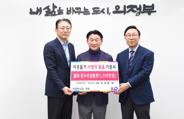 [금요저널] 의정부시는 1월 23일 KD운송그룹이 설 명절을 앞두고 어려운 이웃을 위해 온누리상품권 1천 매를 기탁했다고 밝혔다.