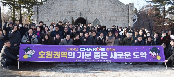 [금요저널] 의정부시 호원2동행정복지센터는 1월 23일 캠프 레드클라우드 내 예배당에서 2024년 비전 공유의 장 ‘시민과 함께하는 호원권역의 기분 좋은 새로운 도약’을 개최했다.