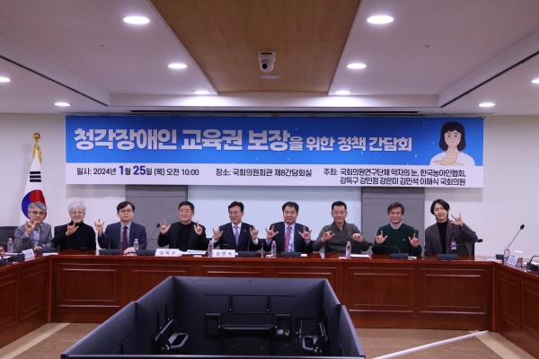 [금요저널] 국회 교육위원회 소속 강득구 의원이 책임연구의원으로 있는 국회의원 연구단체 ‘약자의 눈’은 지난 25일 오전 10시, 국회의원회관 제8간담회의실에서 청각장애인의 교육권 보장을 위한 간담회를 개최했다.