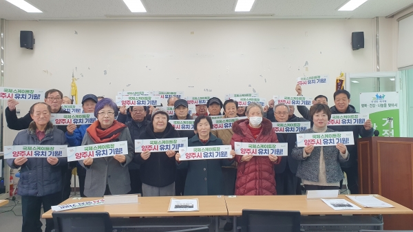 광적면 행정복지센터 관계자는 이날 행사에는 대한노인회 양주시지회 광적 분회 회원들과 광적 소재 경로당 임원들이 국제스케이트장 유치의 염원을 담은 릴레이 캠페인에 동참해 국제스케이트장 양주시 유치에 힘을 보탰다고 설명했다.