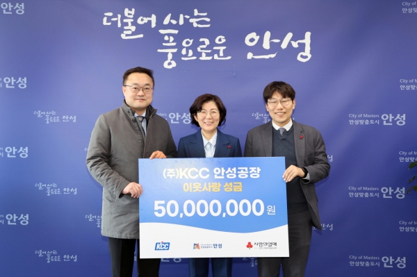 ㈜KCC안성공장의 기부금은 안성시 내 취약계층과 사회복지시설 지원에 사용될 예정이다.