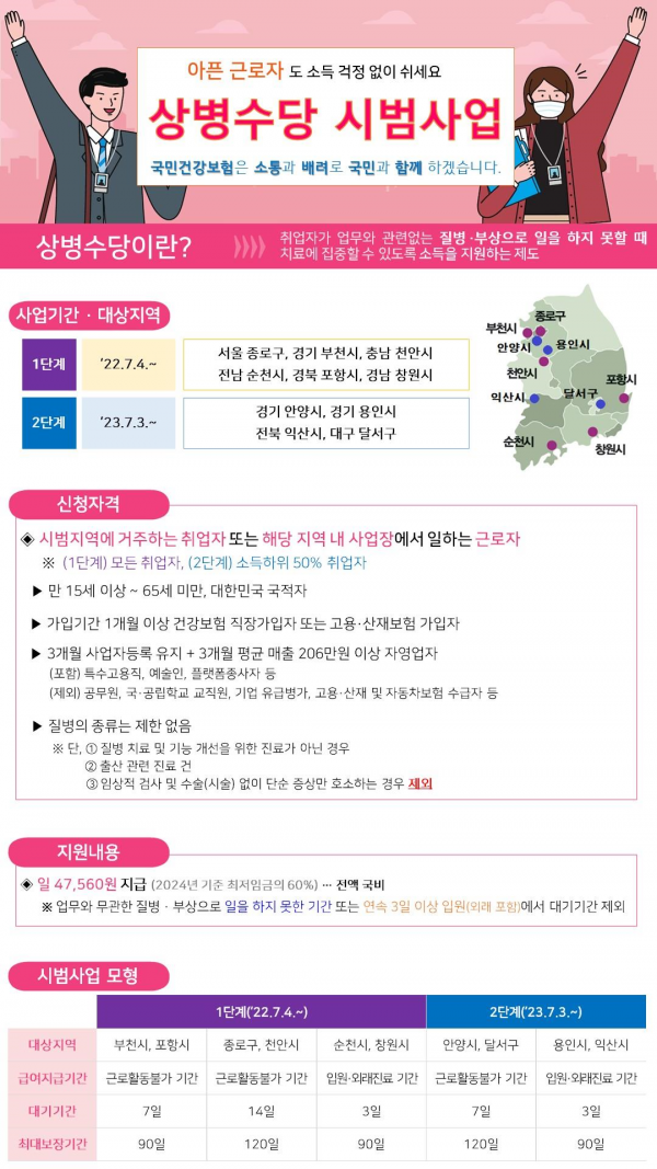 [금요저널] 업무 외 부상이나 질병으로 근로를 할 수 없게 되어 생활에 어려움을 겪는 지역주민들이 혜택을 받을 수 있도록 상병수당 신규 지역 4곳을 추가로 선정한다.