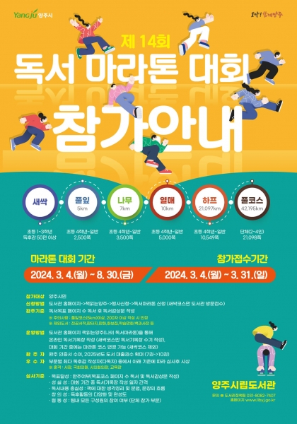 [금요저널] 양주시는 오는 3월 4일부터 8월 31일까지 6개월간 시민 독서 생활화를 위한 2024년 제14회‘독서마라톤 대회’를 추진한다.