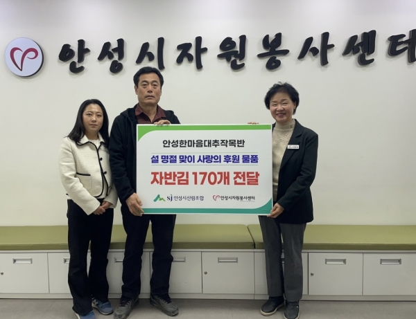 [금요저널] 안성한마음대추작목반과 안성시산림조합이 관내 취약계층의 풍요로운 설 맞이를 위해 안성시자원봉사센터에 200만원 상당의 광천김 170개를 기탁해 2월 1일 전달식을 진행했다.