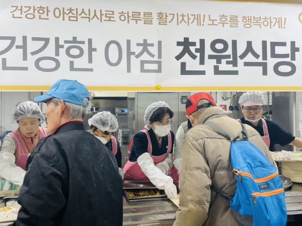 김동선 관장은 “새벽부터 많이 오셔서 어르신들이 서로 이야기도 나누면서 든든하게 하루를 시작하게 되어 뿌듯하고 앞으로도 어르신이 원하는 건강한 천원 식당이 운영될 수 있도록 노력하겠다”고 말했다.