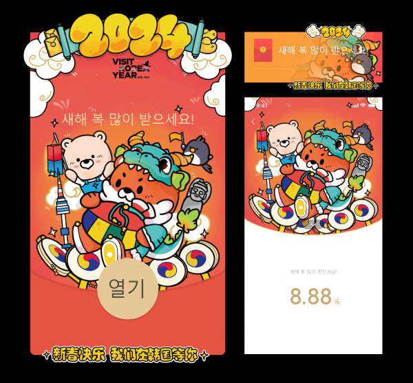 최근 중국 현지에서 위챗으로 홍바오를 주고받는 트렌드를 반영해, 공사 7개 중국지사 위챗 계정에서 올해를 상징하는 청룡과 공사 캐릭터가 그려진 홍바오를 무료로 배포하고 있다.