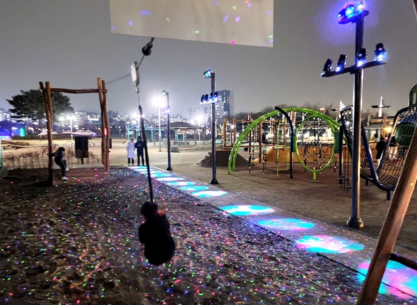 먼저 상동호수공원 어린이놀이터의 면적을 확대하고 야간 가족 동반 이용객을 위해 관내 최초로 놀이형 경관조명을 도입했다.