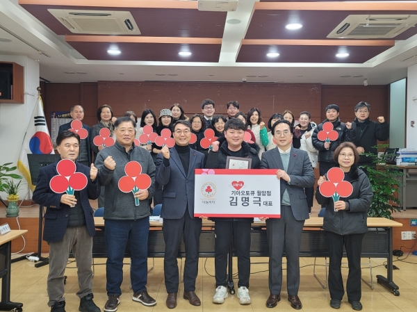 기아오토큐 월암점 대표인 김명극 위원은 “우리 시 나눔리더 1호로 가입할 수 있어 기쁘고 영광스럽다”며 “저의 나눔이 어려운 이웃들에게 조금이나마 도움이 되기를 바라며 앞으로도 지역사회를 위해 열심히 봉사하겠다”고 말했다.