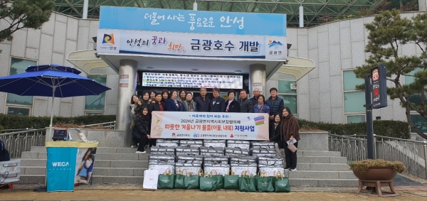 이번 사업은 금광면지역사회보장협의체가 따뜻한 겨울나기 일환으로 진행됐으며 열악한 주거환경에 충분한 난방을 할 수 없는 저소득 가정을 발굴해 이불 및 내복을 지원함으로써 추운겨울을 좀 더 따뜻하게 보낼 수 있도록 각 가정에 전달하고 안부를 확인할 수 있는 시간을 가졌다.