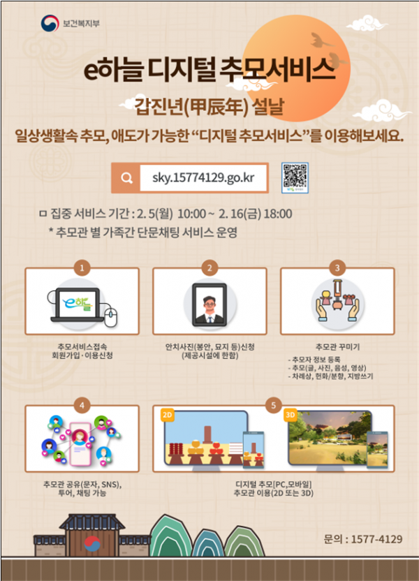 [금요저널] 보건복지부는 설날 연휴를 맞아 고인을 추모하고 가족과 친지, 지인 간 비대면 소통이 가능한 ‘디지털 추모서비스’ 기능을 고도화해 제공한다고 밝혔다.