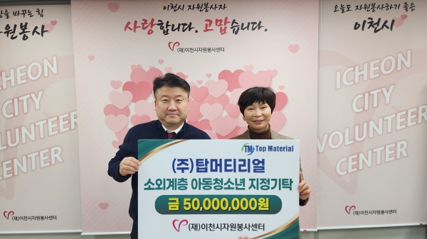 탑머티리얼, 이천시자원봉사센터에 5천만원 기부