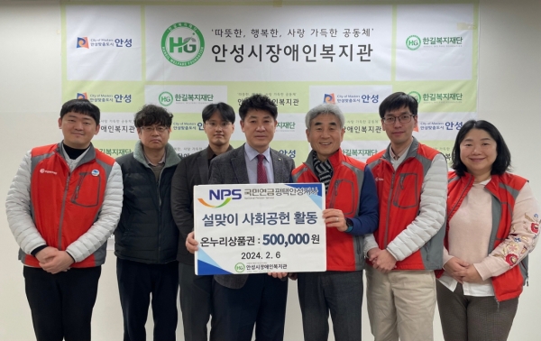 국민연금공단 평택안성지사, 안성시장애인복지관에 설맞이 사회공헌활동으로 ‘온누리 상품권’ 후원