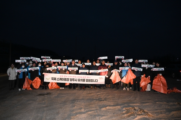 통장과 주민자치위원들은 피켓을 흔들며 스케이트장 유치를 위한 염원과 열의를 불태웠고 회암천 일대에는 “국제스케이트장은 양주로”라는 함성이 울려퍼졌다.