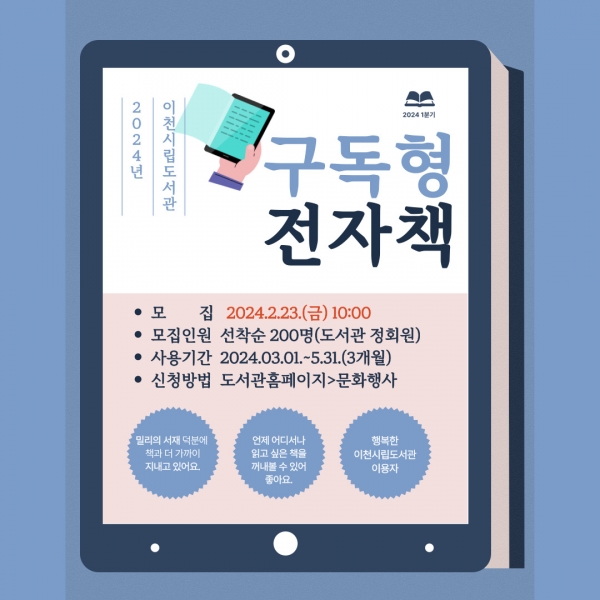 2024년 구독형 전자책 서비스는 ▲1분기▲2분기▲3분기로 분기별 200명씩 모집할 계획이다.