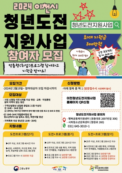 자세한 사항은 이천시 홈페이지에서 확인할 수 있으며 기타 궁금한 사항은 이천시 청년도전 지원사업팀으로 문의하면 된다.