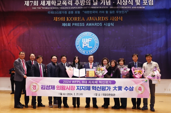 [금요저널] 김성제 의왕시장이 2월 21일 국회의원회관 대회의실에서 열린 2024 WFPL 8대 지자체 혁신평가 시상식에서 ‘대상’을 수상하는 영예를 안았다.