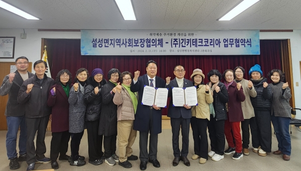 [금요저널] 설성면 지역사회보장협의체는 관내 취약계층 주거환경 개선을 위해 ㈜긴키테크코리아와 2월 21일 설성면행정복지센터에서 업무협약을 체결했다.