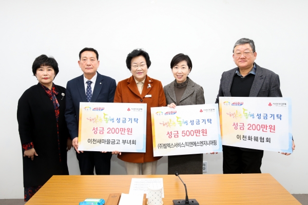 [금요저널] 지난 2월 28일 ㈜발렉스서비스, 이천화훼협회, 행농영농조합, 이천새마을금고 부녀회가 따뜻한 마음을 모아 1,000만원을 기탁했다.