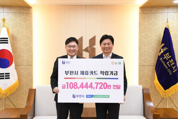 [금요저널] 부천시는 지난 28일 NH농협은행 부천시지부로부터 부천시 제휴카드 이용 적립금 1억8백여만원을 전달받았다고 밝혔다.