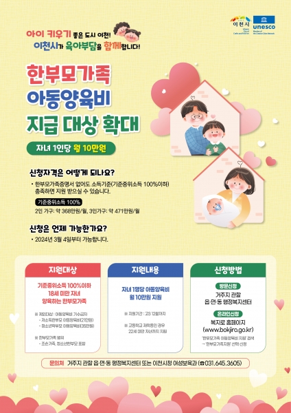 김경희 이천시장은 “이천시는 한부모가족의 안정적인 양육환경 조성을 위해 자녀의 특기교육비 지원, 청소년 한부모 자립지원 등 다양한 지원사업을 하고 있으며 아이 키우기 좋은 이천을 만들기 위해 더욱더 최선을 다하겠다”고 말했다.