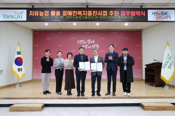[금요저널] 양주시가 ‘양주시농업기술센터’와 ‘양주시장애인종합복지관’이 치유농업을 활용한 ‘장애인복지 증진 사업’ 추진을 위한 업무협약을 체결했다고 4일 밝혔다.