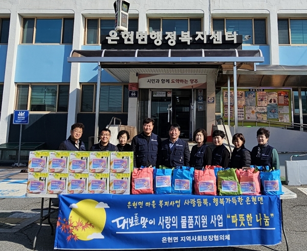 어연선 은현면장은 “변함없이 온정의 손길을 보내주시는 은현면 협의체 위원님들과 새마을부녀회 덕분에 우리 주변의 어려운 이웃들이 더욱 따뜻한 하루를 보낼 수 있었다”며 “앞으로도 협의체와 새마을부녀회와 협업해 나눔으로 따뜻한 은현면이 될 수 있도록 최선을 다하겠다”고 전했다.