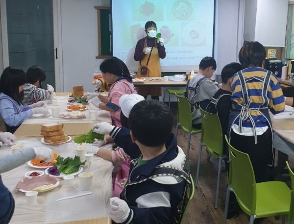 교육내용은 ▲[신체활동] 아동·청소년기에 적합한 신체활동 ▲[영양] 알록달록 컬러푸드 교육 및 무지개 샌드위치 만들기 ▲[구강] 가상현실 체험을 통한 입속 건강 살펴보기 ▲[절주] 음주 예방 교육 ▲[아토피] 아토피 피부염 예방을 위한 식습관 알기 등으로 구성됐다.
