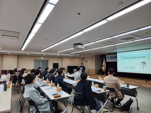 이날 강의에서 외국인환자 유치에 관한 비결을 알기 쉽게 설명해 신규기관의 사업에 대한 접근성을 높였다.