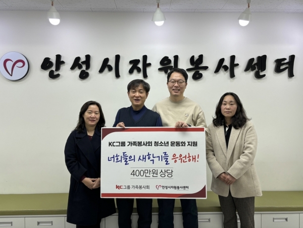 안성시자원봉사센터 김동성 센터장은 “매번, 뜻깊고 실효성 있는 기부로 지역복지 발전에 힘쓰는 KC그룹의 의미 있는 행보에 함께하게 되어 기쁘다”며 “우리 청소년들이 새 운동화를 신고 내딛는 발걸음마다 희망과 설렘으로 가득 찬 학교생활을 하길 바란다”고 말했다.