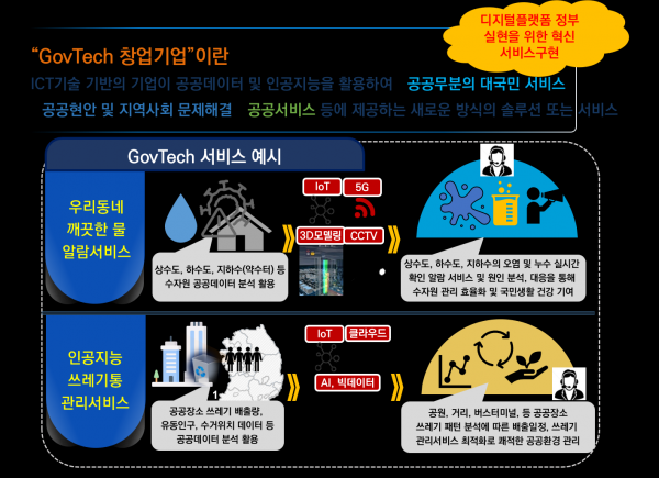 기업은 공공데이터와 민간의 ICT 기술을 활용해 공공서비스, 지역의 사회문제 해결 등 GovTech 분야의 혁신적 사업모델을 자유롭게 제안하고 정부는 선정된 기업을 대상으로 GovTech 서비스 개발을 위한 창업·사업화 자금, 클라우드 인프라 비용, 데이터셋 구축, SW품질 검증 등 사업화 지원부터 인큐베이팅·컨설팅, 홍보·마케팅까지 집중지원 할 예정이다.