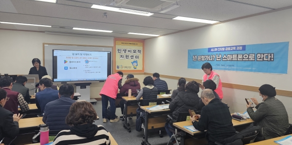 지난 5일 개강한 ‘알아두면 편리한 디지털 금융 생활’은 시니어금융협의회와 협업으로 진행된 교육으로 모바일뱅킹 사용법, 금융사기 예방법 등의 내용으로 구성됐다.