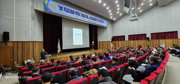 [금요저널] 충남도 농업기술원은 13일 기술원 대강당에서 도내 농업인과 관계자 등이 참석한 가운데, ‘벼 직파재배 확대 기술지원 사업설명회 및 전문교육’을 추진했다.