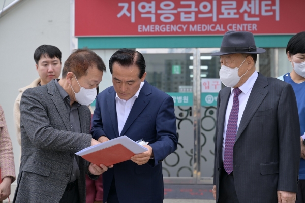 백성현 시장은 백제병원 별관 5병동을 방문해 직원들을 격려하고 “높은 간병비로 인한 시민들의 부담을 줄이고 입원 치료를 받지 못하는 상황을 방지해야 한다”며 쾌적한 환경에서 최고의 서비스를 제공해 지역응급의료센터 이용 만족도를 높일 것을 당부했다.