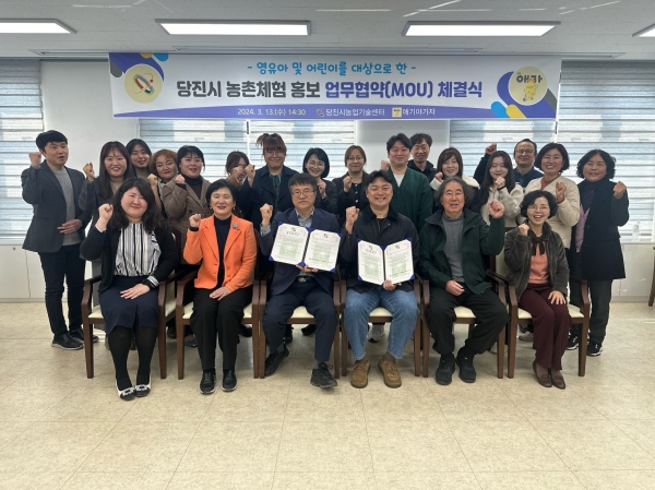 [금요저널] 당진시농업기술센터는 13일 키즈액티비티 플랫폼 부문 1위 ‘애기야 가자’와 관내 농촌체험 홍보 업무협약을 체결했다고 밝혔다.