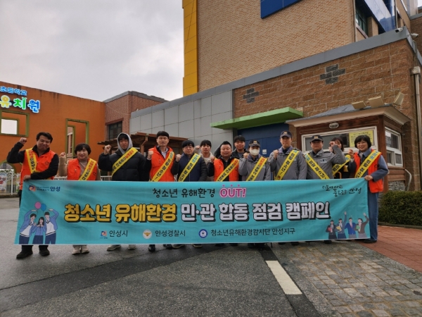 이번 민·관·경 합동점검은 안성시와 안성경찰서 안성시의 청소년유해환경감시단으로 지정된 법무부 청소년 범죄예방위원 안성지구위원회가 참여했으며 내혜홀초등학교 주변에서 이루어졌다.