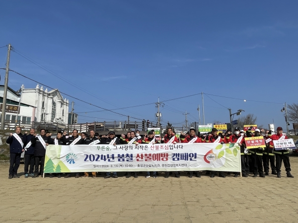 [금요저널] 홍성군은 2024년 봄철 대형산불 특별대책 기간을 맞아 홍성군 산림녹지과, 산불전문예방진화대, 광천읍 명예산불감시원, 광천읍 기관단체 회원, 광천읍 직원 등 100여명이 참석한 가운데, 광천전통시장 일원에서 산불 예방 캠페인을 14일 실시했다.